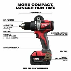 The 2893-22CX M18â„¢ 2-tool Combo kit includes the 1/2 in. brushless hammer drill driver (2902-20) and the 1/4 in. hex compact brushless impact driver (2850-20). The M18â„¢ cordless system’s patented technologies and electronics, innovative motor design, and superior ergonomics provide the most efficient blend of power, weight and performance in the industry. The M18â„¢ 1/2 in. brushless hammer drill/driver is the most powerful drill in its class at 725 in-lbs of torque. The M18â„¢ 1/4 in. hex compact brushless impact driver has the fastest application speed its class and delivers 1,600 in-lbs of torque. Both tools feature Milwaukee® built brushless motors, REDLINKâ„¢ electronics, and REDLITHIUMâ„¢ batteries that provide more efficient power delivery, for fewer trips to the charger.