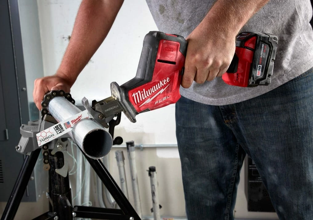 The Milwaukee 2719-20 M18 FUEL HACKZALL is the fastest cutting and most powerful one-handed design reciprocating saw. Utilizing a POWERSTATE Brushless Motor and a best in class 7/8 in. stroke length, the M18 FUEL HACKZALL cuts up to 50% faster than competitors. The compact, 1-handed design provides superior control and the ability to make cuts in tight spaces. The dual gear counter balance mechanism provides the lowest in-cut vibration of any reciprocating saw, resulting in faster cut-starts in metal and reduced user fatigue. REDLINK PLUS Intelligence ensures optimized performance and protects your investment from overload, overheating and over-discharge. A rubber seal and weep holes provide superior protection against water and debris.