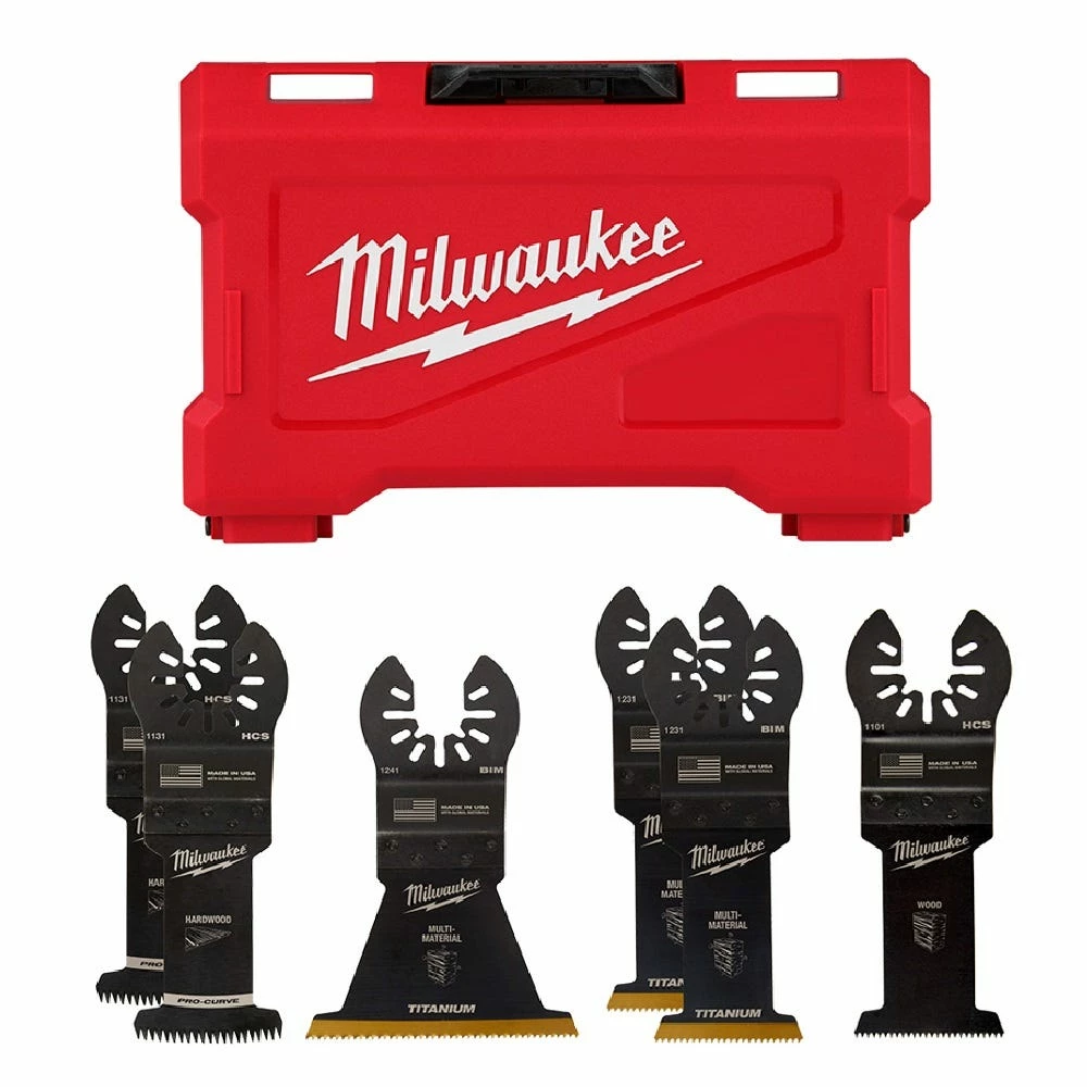 The MILWAUKEE® Universal Fit OPEN-LOK™ 6-Piece Oscillating Multi-Tool General Purpose Blade Kit provides an assortment for cuts in hardwood, wood & nails, wood, PVC, and drywall. The included Titanium Enhanced Bi-Metal Blades use premium high-speed steel and last up to 15X longer than standard high carbon steel (HCS) blades. The bi-metal blade is ideal for smooth cuts in wood with nails, PVC, and drywall. The Triple Ground Japanese Tooth Blades deliver up to 2X faster cuts than the previous Milwaukee HCS blade and features a PRO-CURVE™ cutting edge for greater control. Ideal for fast, clean cuts in Hardwood and can also be used in other woods, PVC, and drywall. The oscillating wood blade has been designed with precision ground aggressive teeth for fast cuts in wood, drywall, and PVC. This oscillating tool blade variety pack is designed and made in the USA with global materials and includes a storage case.