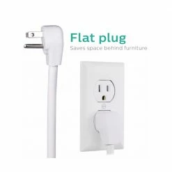 - Flat Plug Extension Cord – Keep furniture and media close to the wall with the low-profile flat plug at the end of this power strip. The angled plug allows for this surge protector to be plugged into the receptacle without blocking the other outlet