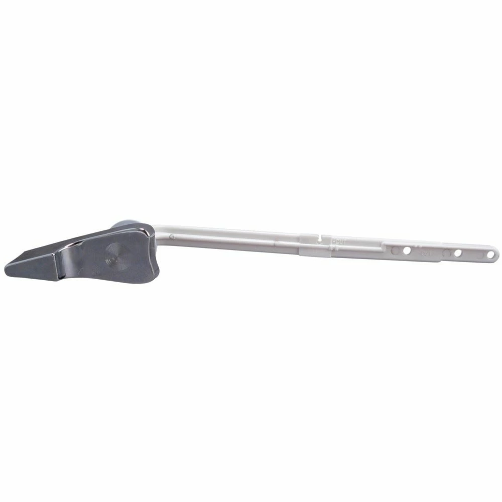 - Replacement tank lever with bendable plastic arm and chrome plated handle.