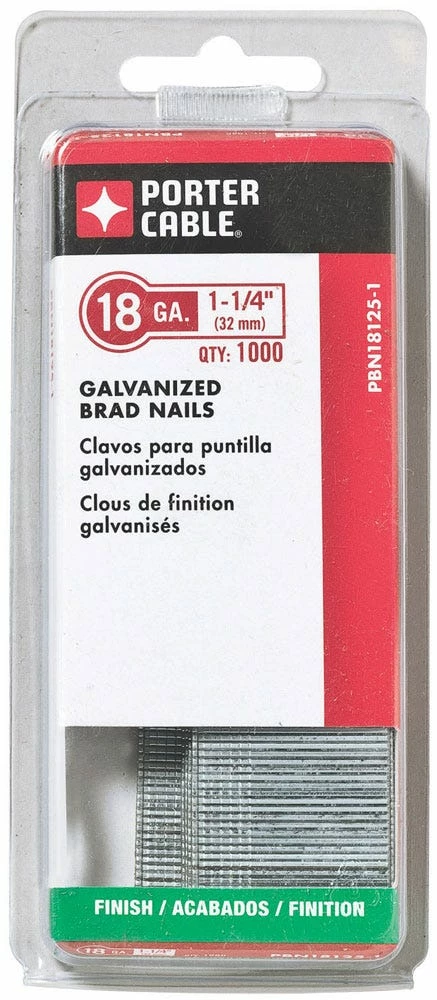 - 1-1/4″, 18 ga. brad nails, 1K pack
