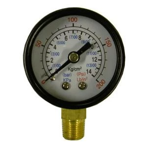 The Powermate pressure gauge is part of a large line of Powermate genuine replacement parts. Use the Powermate pressure gauge to replace a broken or non working pressure gauge on air carry tank. Dark numbers are easy to read on gauge.
