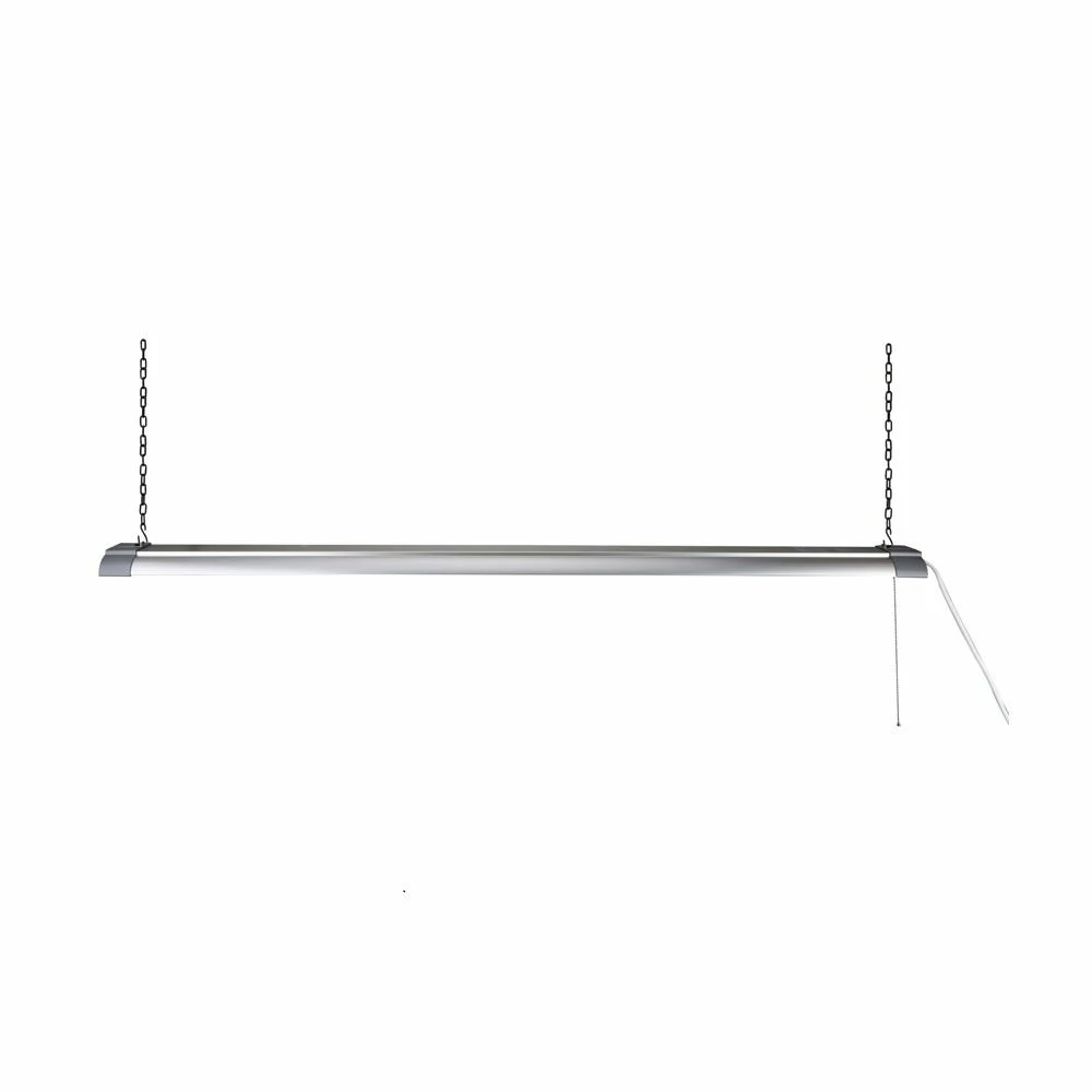 The Real Work 5,500 Lumen Shop Light is perfect for brightening up your garage, workspace or any area that needs extra lighting. A pull chain for on/off operation making it simple and easy to use. This Shop light comes with grounded cord and plug, mounting chain and S hooks for installation.