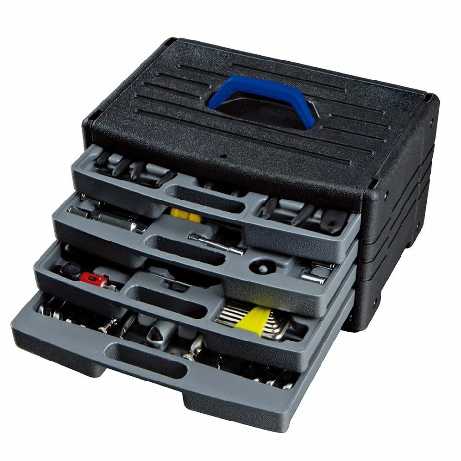 1/4″ drive bit driver; 1/4″ drive stubby ratchet handle; Insert bits: 3, 4, 5, 6, 7 & 8mm slotted, PZI & PZ2 Pozi drive bits, #1, #2, #3 Phillips bits, 3, 4, 5 & 6mm hex bits, T10, T15, T20, T25, T27 & T30 Torx bits; 1/4″ drive coupler; 3/8″ drive disc; bit adapter