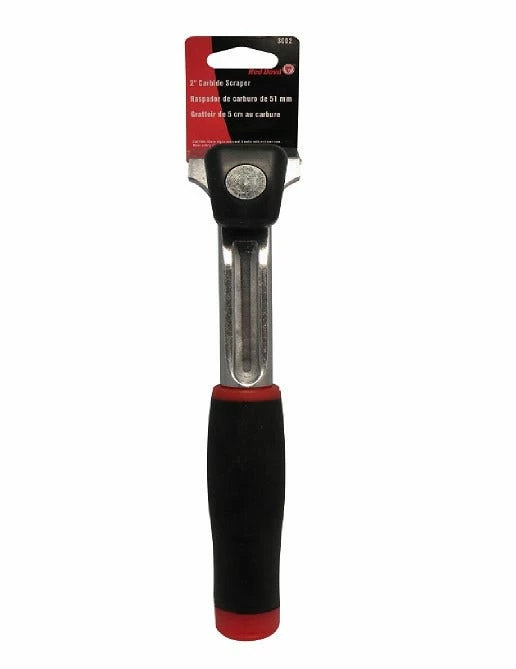 - Die-cast aluminum scrapers feature a soft grip, ergonomic handle, two-edged carbide blade, pull knob for better grip, and threaded handle