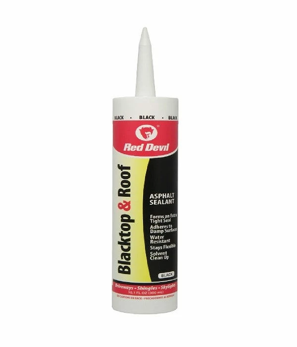 - Asphalt sealant , durable flexible and weather -resistant seal for cracks & joints in asphalt driveways, for waterproofing , repairing and sealing roofs shingles and flashings around chimneys and skylights, can be used on wet or dry surfaces, exterior use, solvent clean up