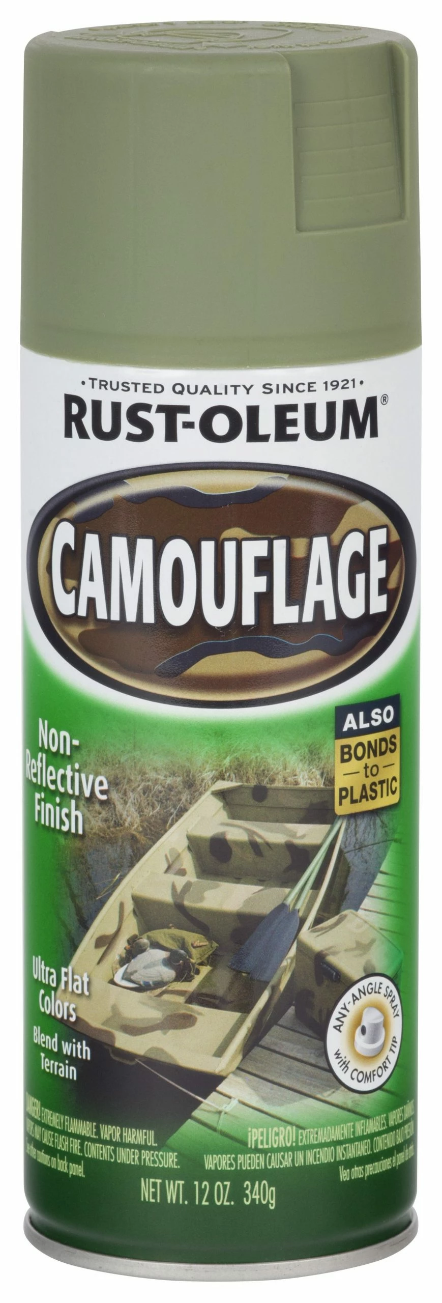 - Rust-Oleum camouflage sprays produce a non reflective “dead flat” finish which dry quickly