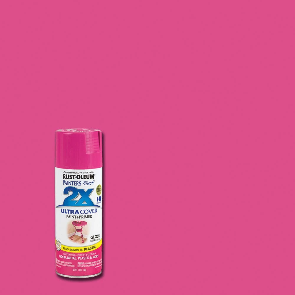 Rust-Oleum Painter’s Touch 2 x Ultra Cover Paint and Primer Berry Pink Gloss Spray – 249123 – Spray Paint