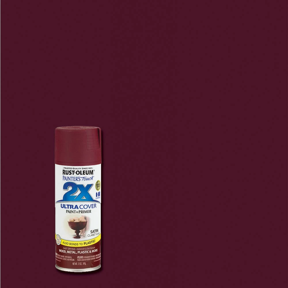 Rust-Oleum Painter’s Touch 2 x Ultra Cover Paint and Primer Satin Claret Wine Spray – 249083 – Paint, Primer & Stain