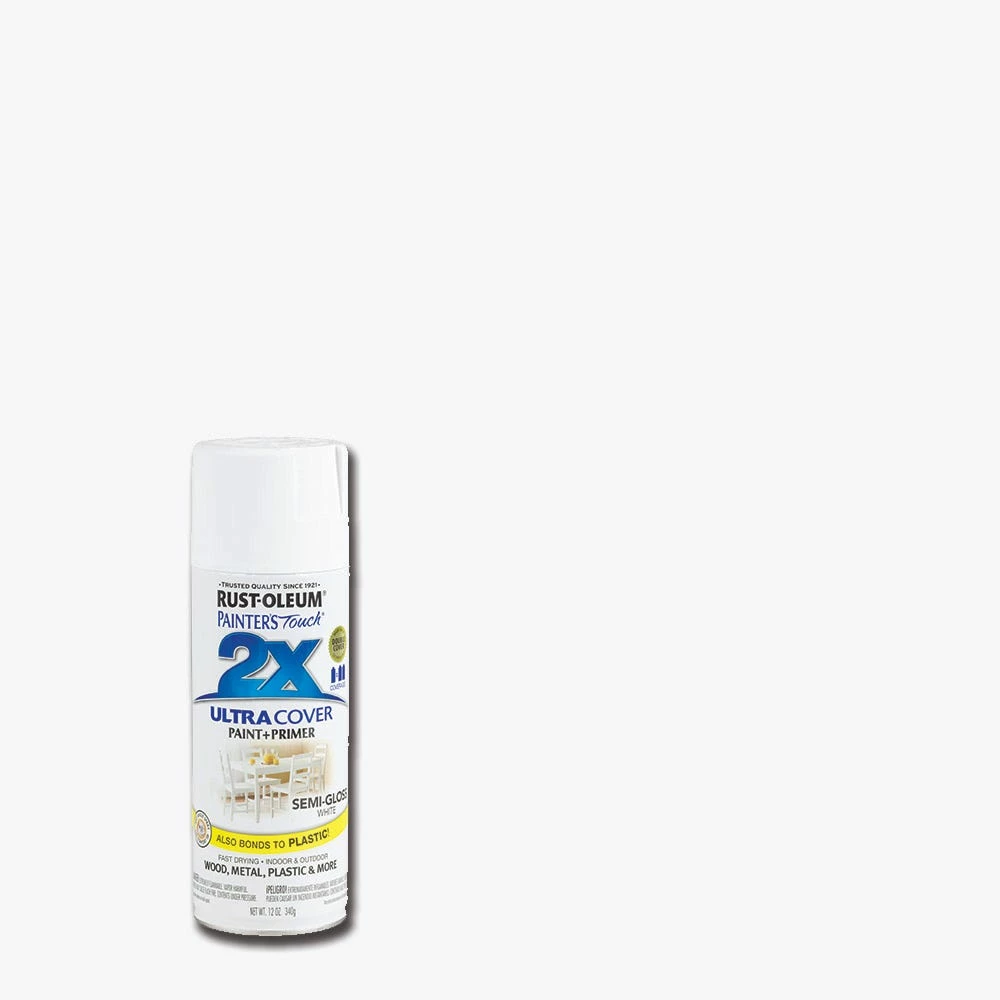 Rust-Oleum Painter’s Touch 2 x Ultra Cover Paint and Primer White Semi Gloss Spray – 249060 – Spray Paint