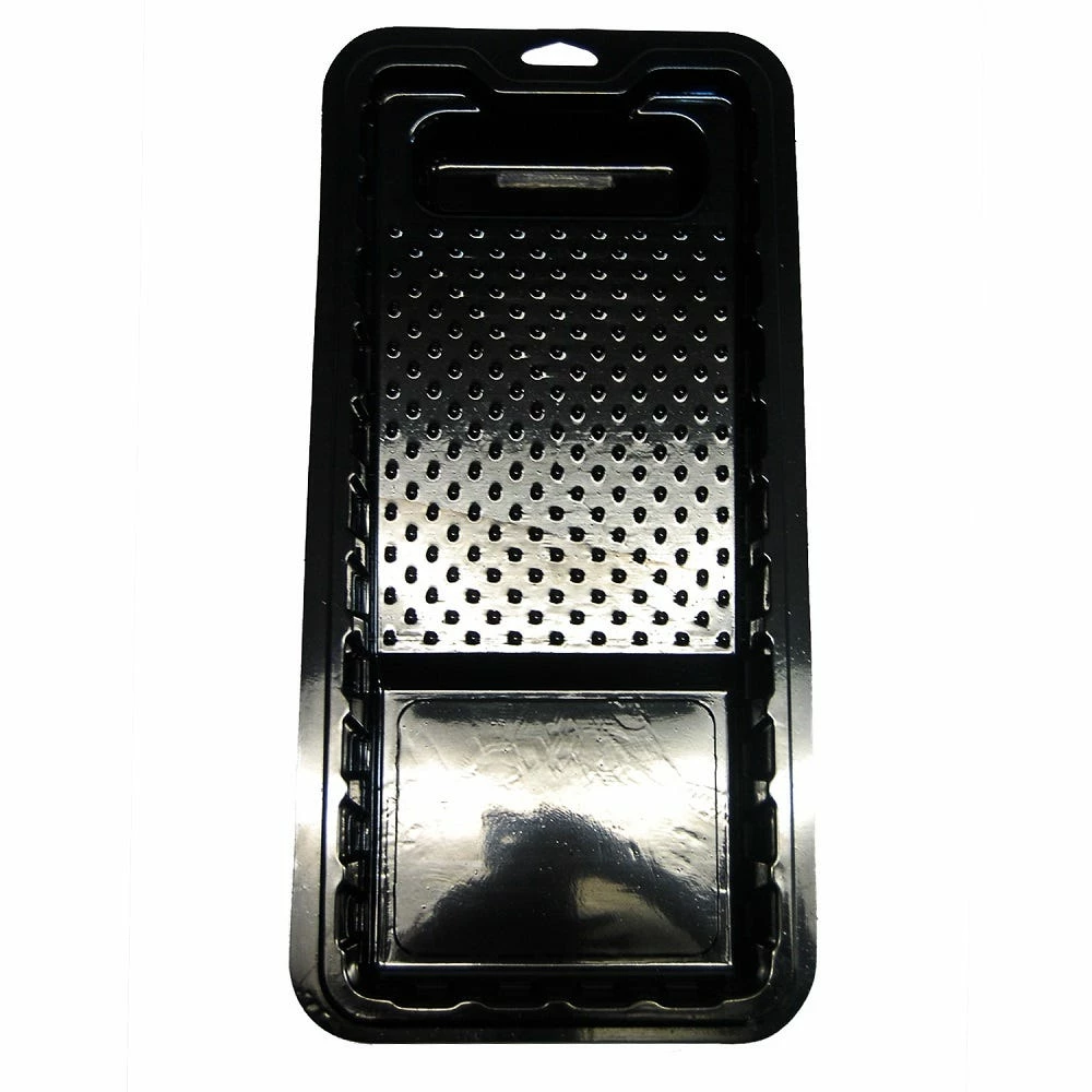 This handy paint tray is a simple choice for paint projects requiring a 4″ or shorter Trim or Mini Roller. Lightweight, durable and reusable simple rinse clean and reuse when the project is finished. Black plastic with molded ribs to load paint on rollers or pads.