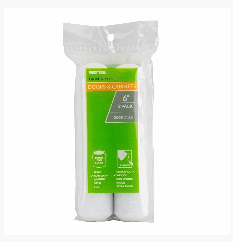 High Density Foam provides an ultra smooth finish with minimal stippling and bubbling. Foam rollers are especially absorbent, which translates to taking in a larger volume of paint than a traditional roller making them well suited to large surface areas. Another benefit to absorbing liquids easily is that when the outer surface of the foam is smooth, it redistributes that same liquid evenly. Because these rollers offer high-density foam they are extremely useful on smooth surfaces where the roller can glide along and dispense paint such as on doors, cupboards, shelves, jambs, window frames, furniture and more! Designed for use with water or oil based stains, enamels, varnishes and urethanes. Package includes (2) 6″ covers for use on a mini-roller frame.
