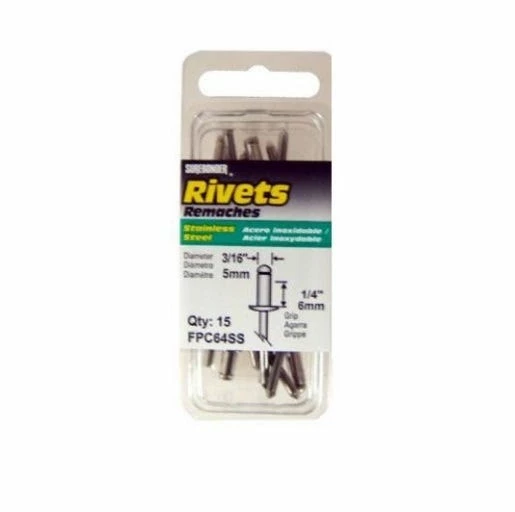 Short Stainless Steel Rivets 3/16″ Dia, 1/4″ Grip – 15 ct.