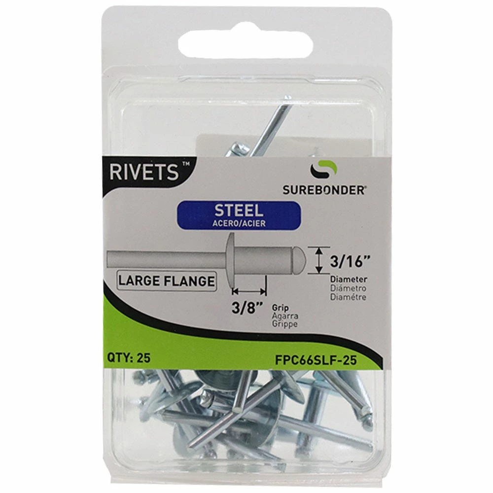 Large Flange Short Steel Rivets 3/16″ Dia, 3/8″ Grip – 25 ct