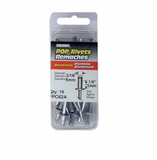 Short Aluminum Rivets – 3/16″ Diameter, 1/8″ Grip – 18 ct.