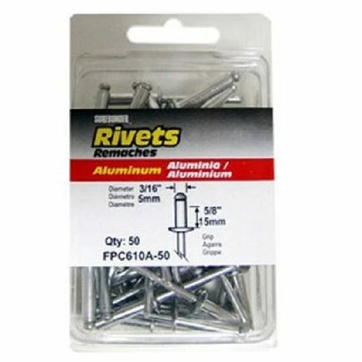 FPC610A Long Aluminum Rivets 3/16″ Dia, 5/8″ Grip – 50 ct.