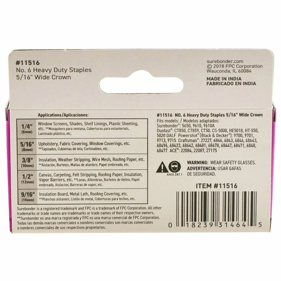 #6 Heavy Duty Wide Crown Staples – 5/16″ – 1000 ct.