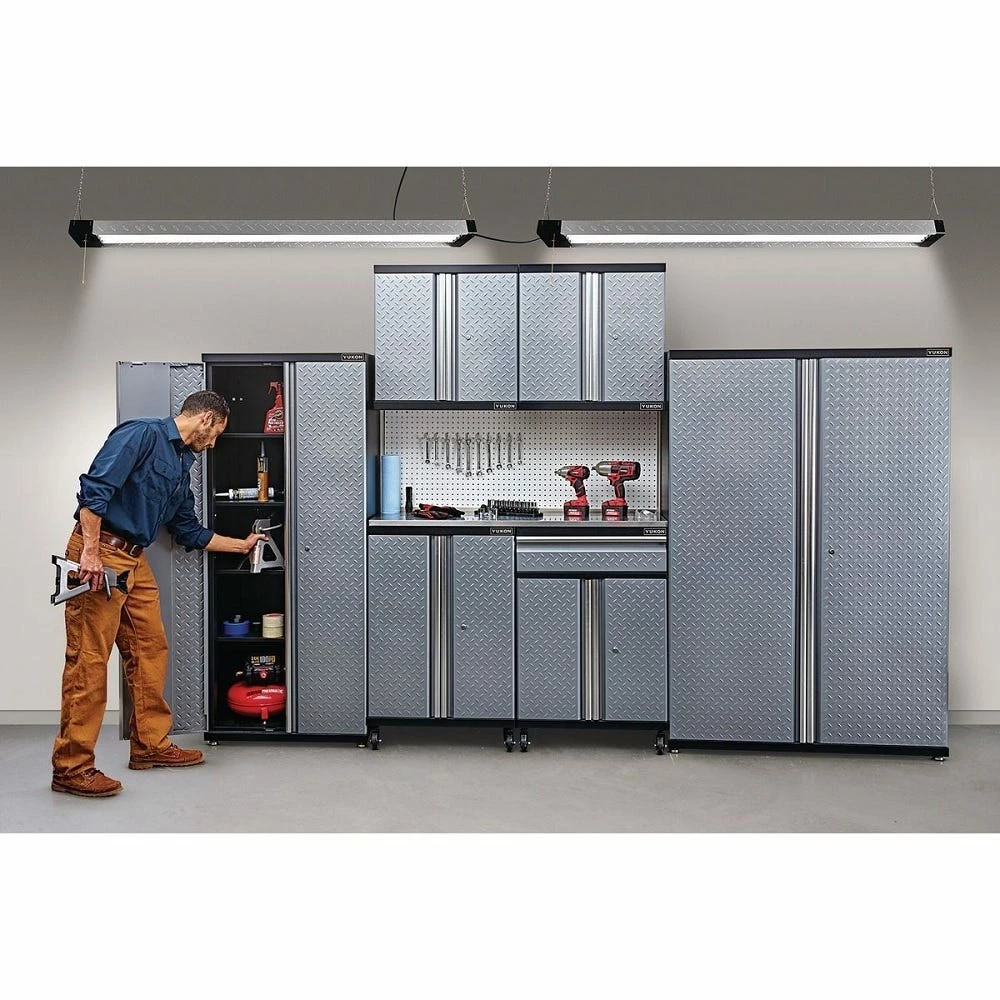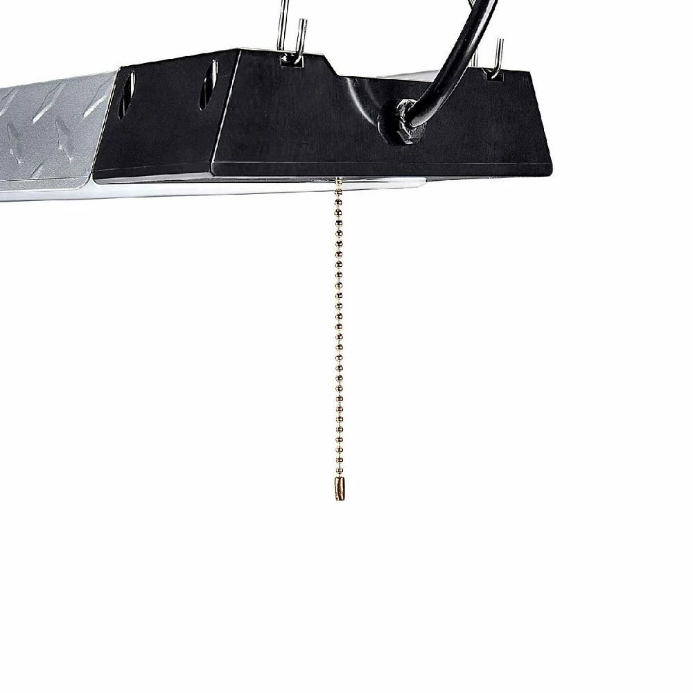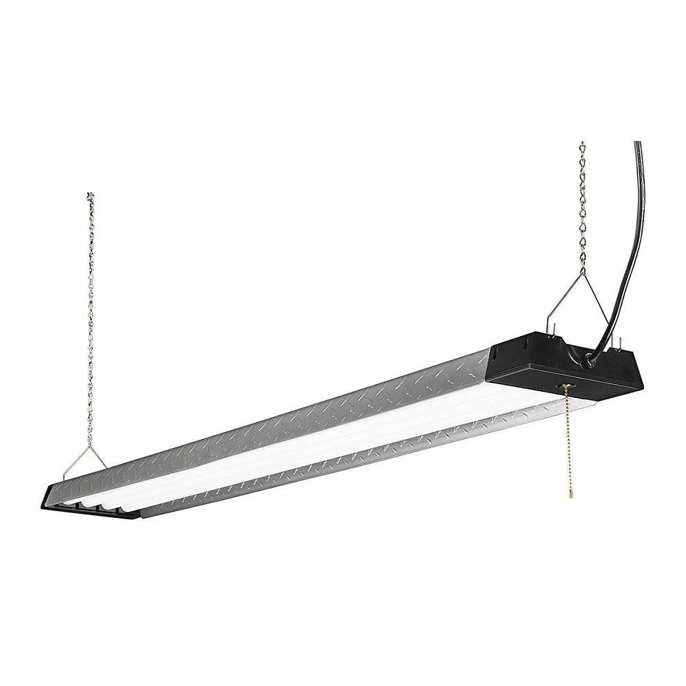 This 10,000 Lumen Linkable Diamond Plate LED Hanging Shop Light is the ultimate work light for a variety of locations. From garden sheds to garages, shop floors – even warehouses – the slim profile and amazing light output lights up the darkest spaces. Utilizing highly efficient LED technology, this LED shop light turns on instantly, with no hum or flicker, and uses much less energy than a typical four tube fluorescent light fixture. Increase the coverage area by connecting up to four lights end-to-end from just one plug. The durable pull-chain on/off switch and hanging hardware provides many different easy-to-install mounting options.