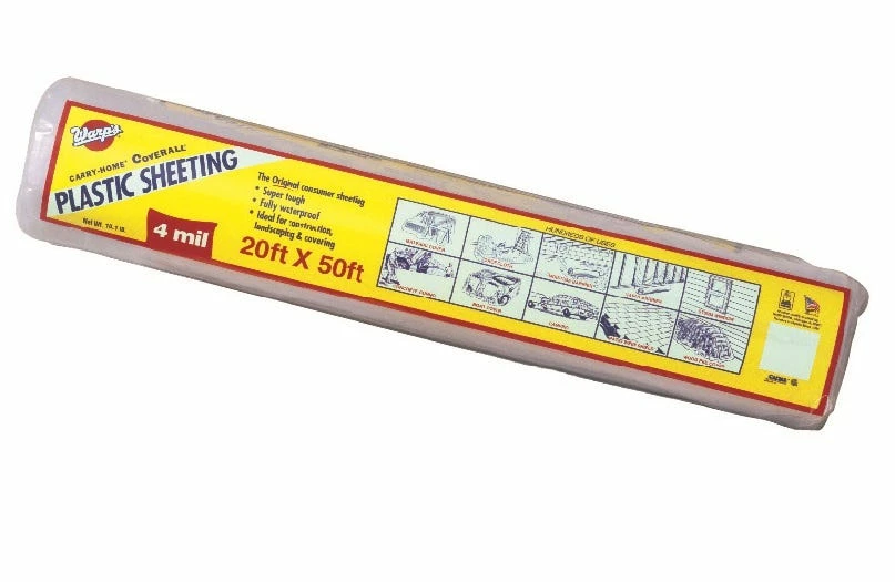 Super tough, fully waterproof plastic sheeting used by DIYers and contractors for large and small construction, landscaping, or covering projects. Warp’s Shelf-Pack, wrapped on a solid core, will sit upright on a shelf or horizontally in a bin with vertical design on front panel and horizontal on rear for flexibility in displaying.