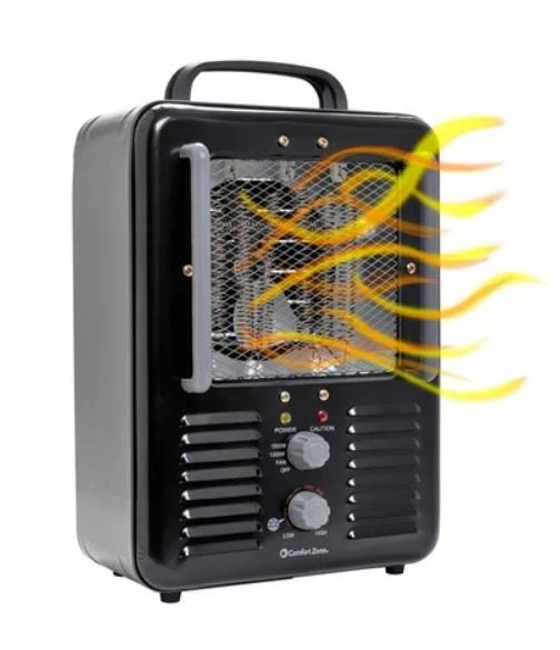 This portable heater from Comfort Zone can quickly and easily warm up your garage, workshop, or any other enclosed space. The energy-efficient compact design can help save you money on your heating bills by providing targeted heating performance where you need it. The stay-cool metal housing protects users from burns and features an over-sized carry handle for safe and comfortable transport as needed.