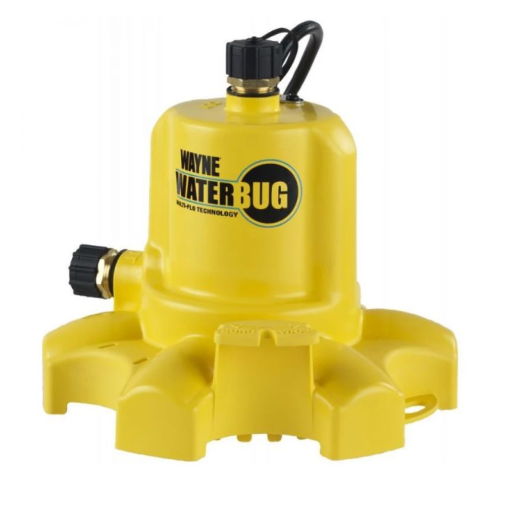Water bugging you? The WAYNE WWB WaterBUG® Submersible Water Removal Pump with Multi-Flow Technology, is the tool for you! Our Patent Pending Multi-Flo Technology is key and allows the user, easy selection of the appropriate discharge for the water removal application, the top discharge is perfect for tight spaces where water removal is needed; window wells, buckets, etc. Side discharge is ideal for easy water removeable from open areas. Our Patent Pending multi-ring suction strainer filters debris, keeping it clear from the suction intake which minimizes clogging. This powerful tool pumps up to 1350 Gallons Per Hour, connects to a standard garden hose and removes water down to a 1/16 inch of the surface, making the area Virtually dry!
